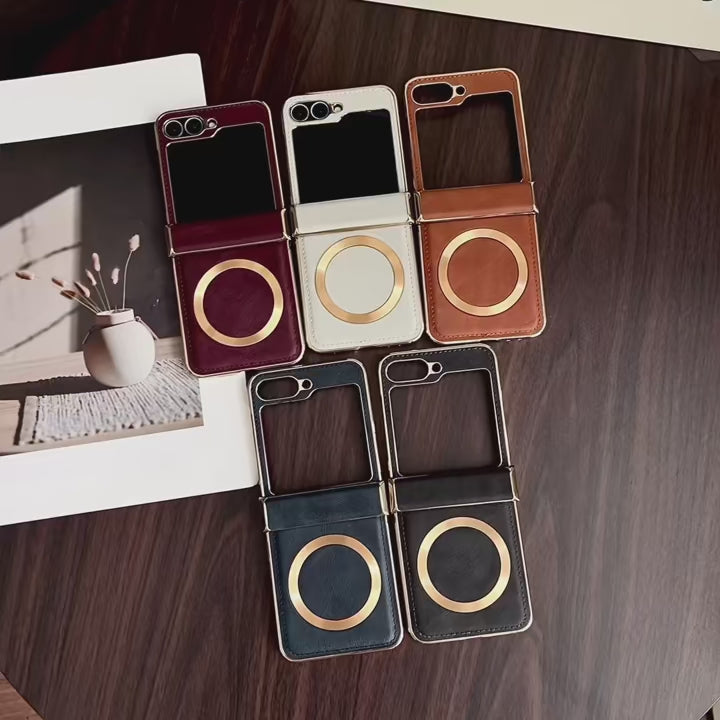 Galaxy Z Flip Series - Electroplated Leather Magnetic Case