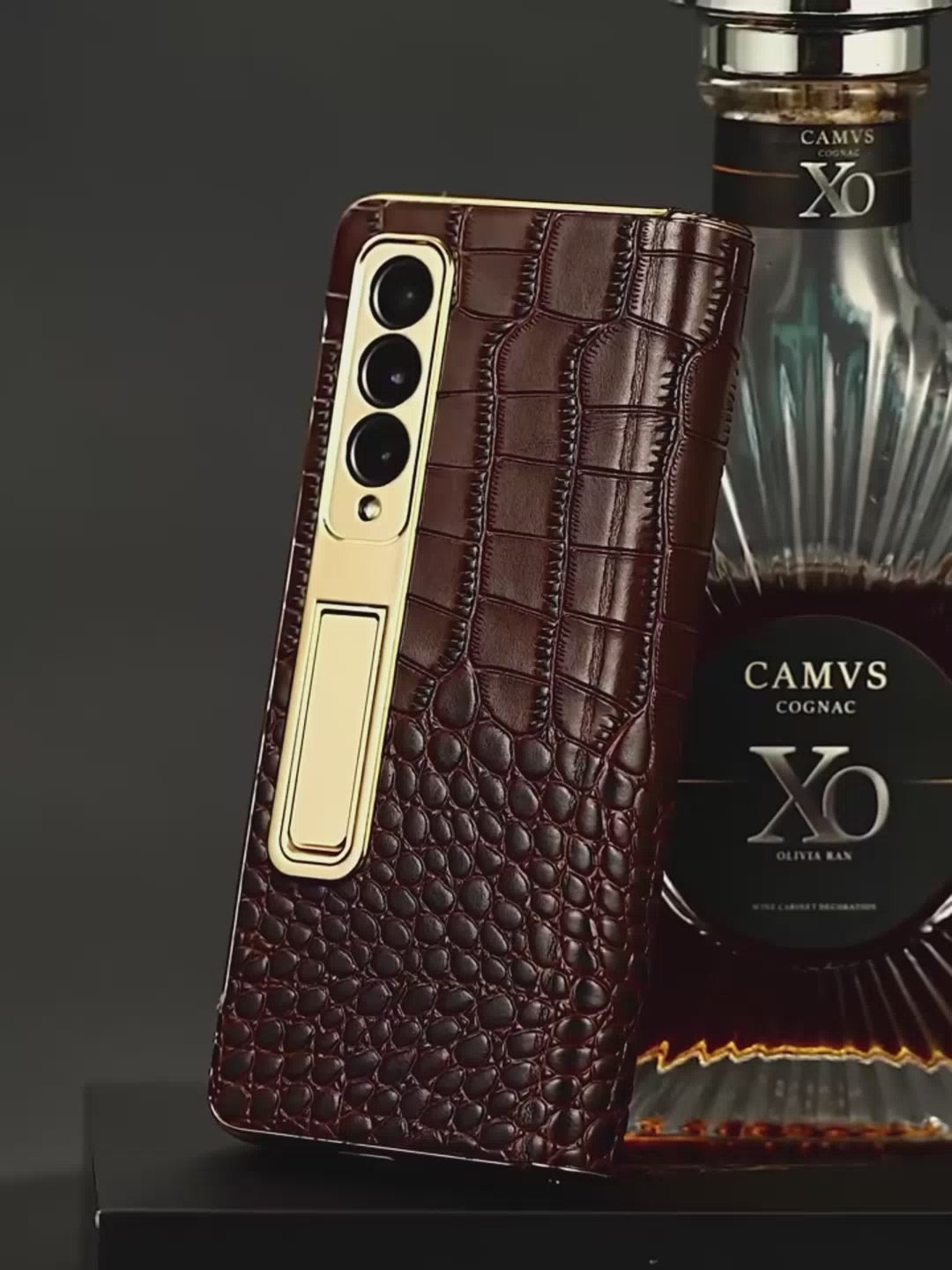Galaxy Z Fold Series - Luxury Crocodile Leather Case with Gold Stand